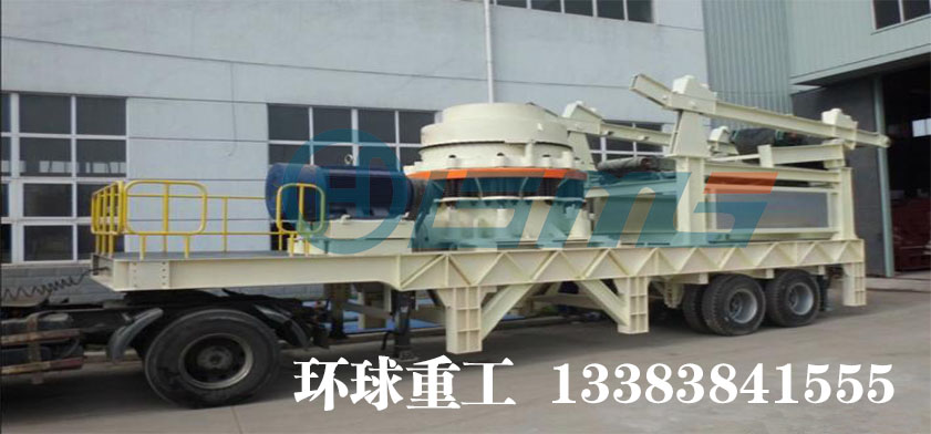 移动式制砂机,全称轮式立式冲击移动破碎站,也叫轮胎立式冲击移动破碎机,配备郑州环球高性能冲击式破碎机...